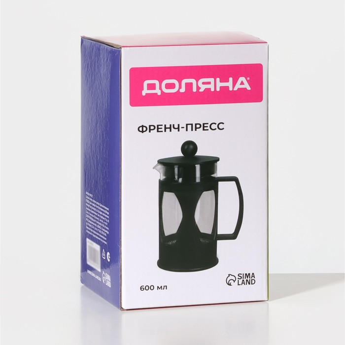 Чайник заварочный френч - пресс Доляна «Оливер», 600 мл, стекло, цвет чёрный