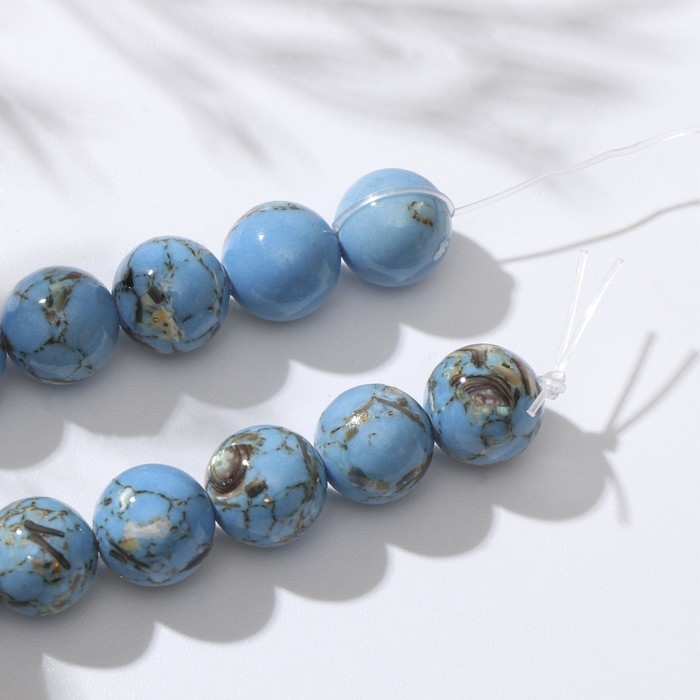 Бусины на нити шар №10 «Варисцит» (38 бусин), цвет голубой