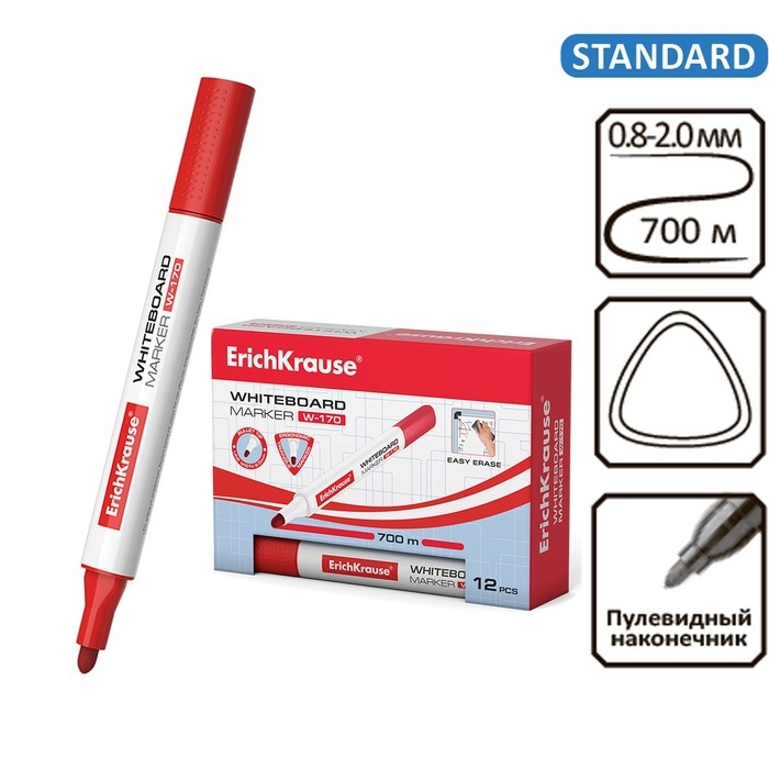 Маркер для досок ErichKrause W-170, 2.0 мм, чернила на спиртовой основе, красный