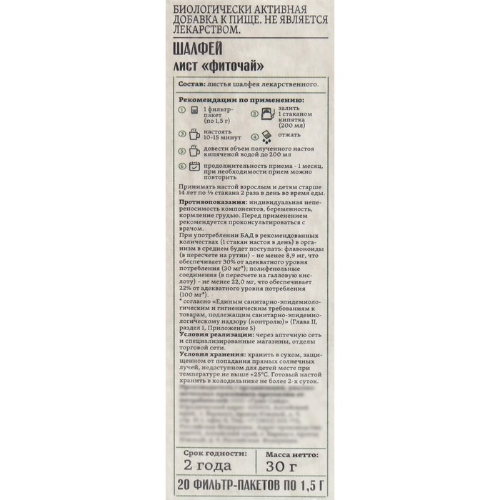 Фиточай Шалфей лист, ф/п 1,5 г № 20