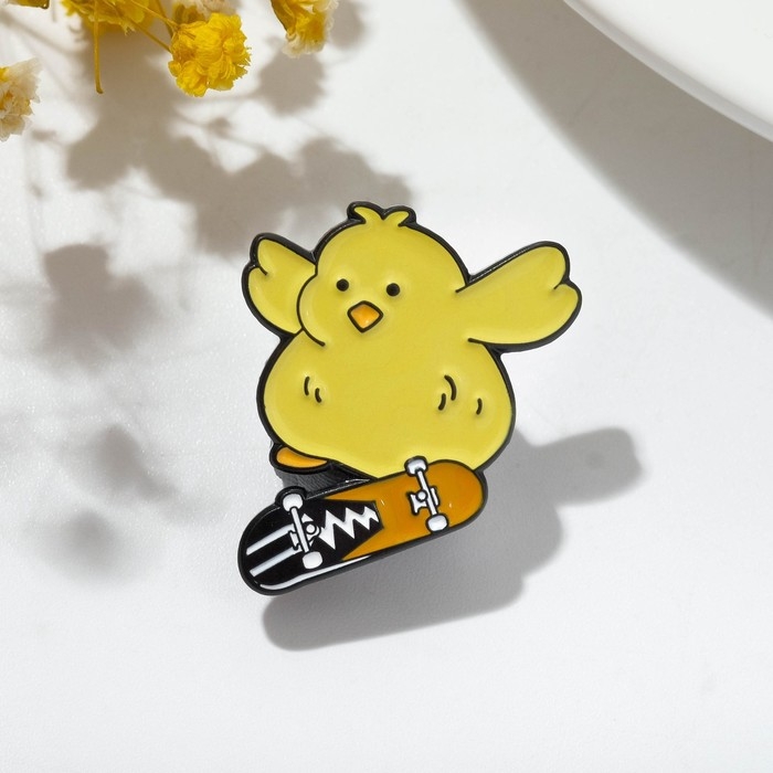 Значок «Цыплёнок» на скейте, цветной в чёрном металле