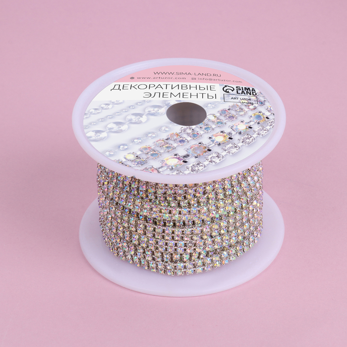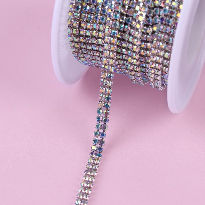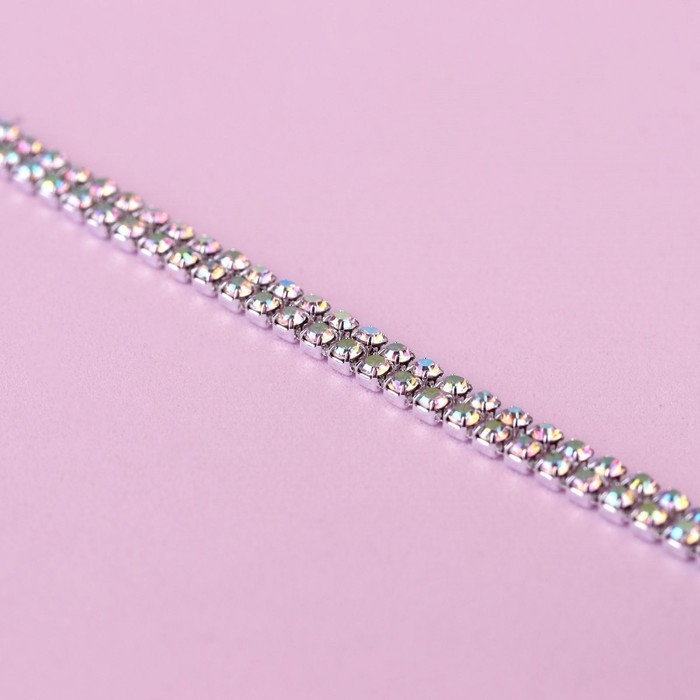 Цепь со стразами, с голографией, 2 ряда, металл, стекло, 4 мм, 4,5 ± 0,5 м, цвет серебряный