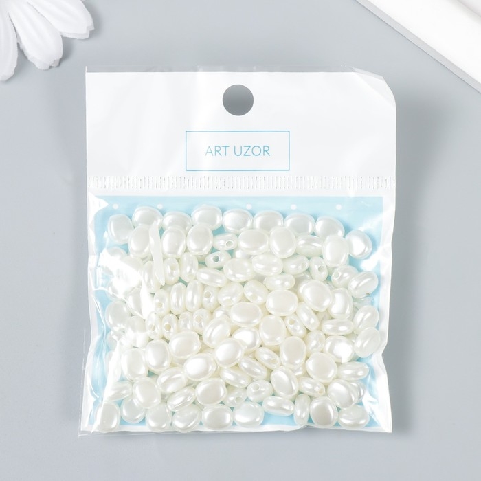 Бусины для творчества пластик "Плоские жемчужинки" набор 20 гр
