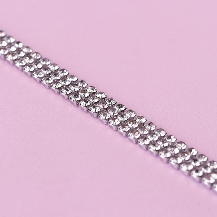 Цепь со стразами, 3 ряда, металл, стекло, 6 мм, 4,5 ± 0,5 м, цвет серебряный