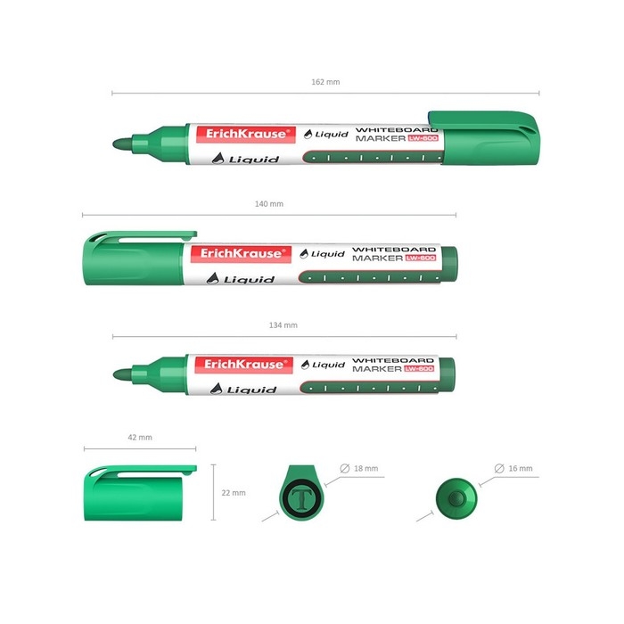Маркер для досок ErichKrause Liquid LW-600, 2.38 мм, жидкие чернила на спиртовой основе, зелёный
