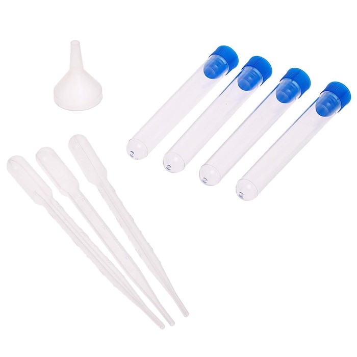 К каждому опыту приводится список необходимых веществ, пошаговая инструкция и объяснение. Набор содержит необходимый лабораторный инвентарь и вещества.