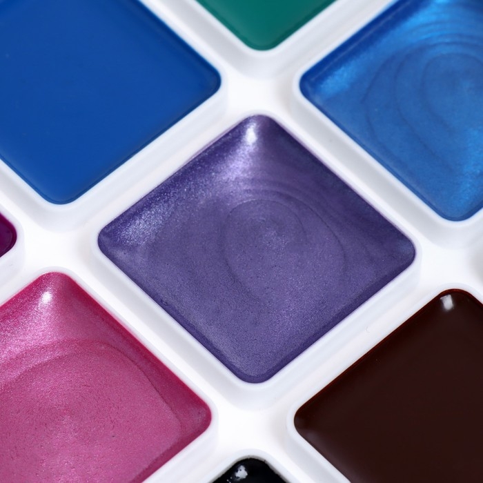 Краски акварельные, перламутровые, в металлической коробке, 12 цветов