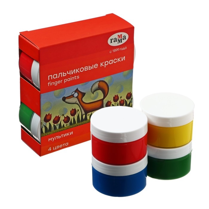 Краски пальчиковые 4 цвета, 50 мл "Мультики"