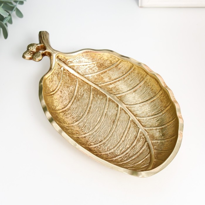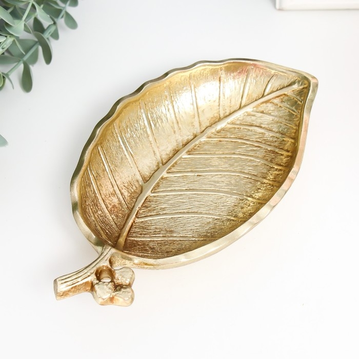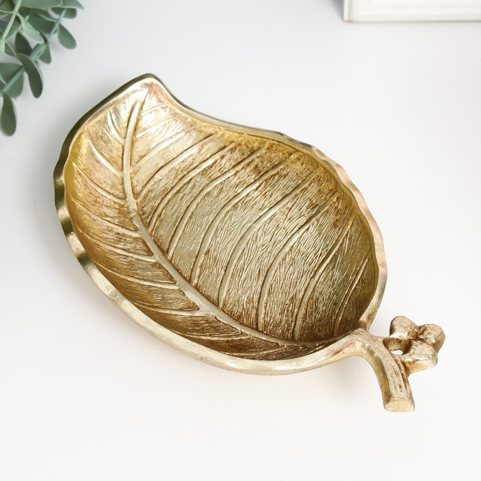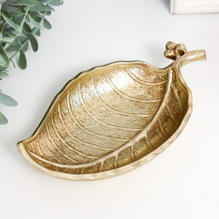 Тарелка декоративная полистоун "Листик" золото 4х21х11 см