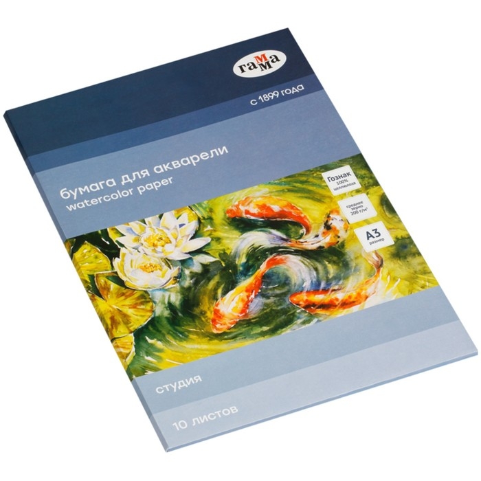 Папка для акварели ГАММА серии «Студия» формата А3 (295*415 мм) плотностью 200 г/м2 средней зернистости, марки А. В папке 10 листов, изготовленных из 100% целлюлозы на заводе «Гознак» без использования оптических отбеливателей. Бумага обладает естественным белым цветом, идеально подходит для водных техник, хорошо впитывает влагу, не деформируется от воздействия воды. Благодаря среднезернистой фактуре и плотности она отлично подходит под многослойные сложные работы карандашами, а также для смешанных техник. Папка представлена в картонной обложке.
