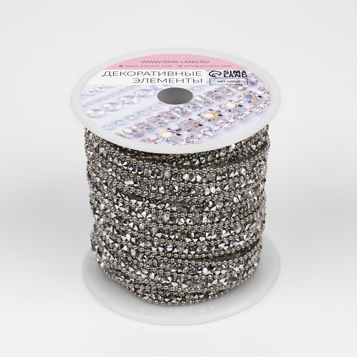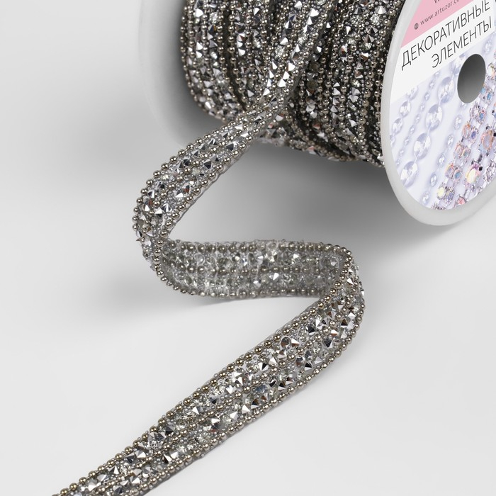 Стразы и цепочка термоклеевые, ширина - 9 мм, 4,5 ± 0,5 м, цвет серебряный