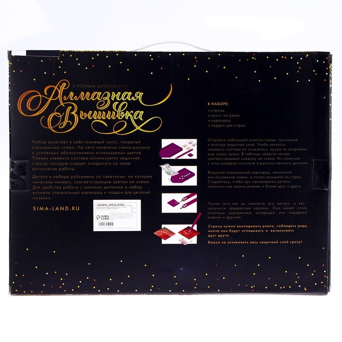 Алмазная вышивка с полным заполнением - это отличный способ провести вечер в творческой атмосфере. Готовое изделие украсит интерьер или станет оригинальным подарком.