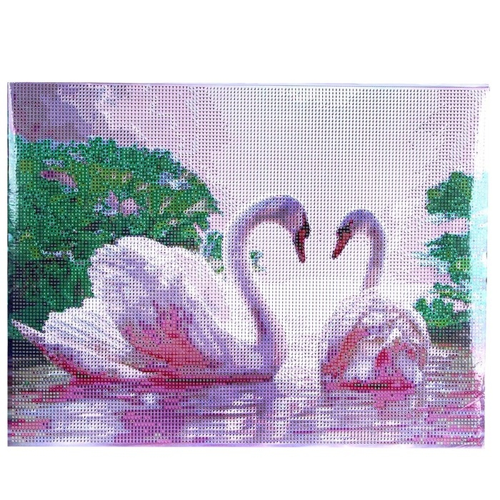 Алмазная мозаика с полным заполнением на подрамнике «Лебеди на озере», 30 х 40 см
