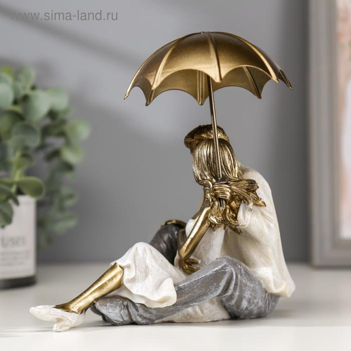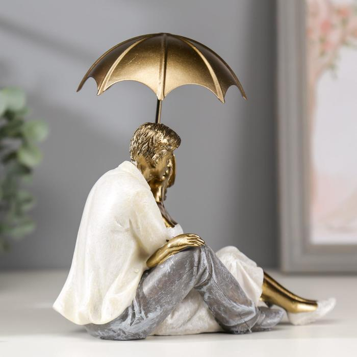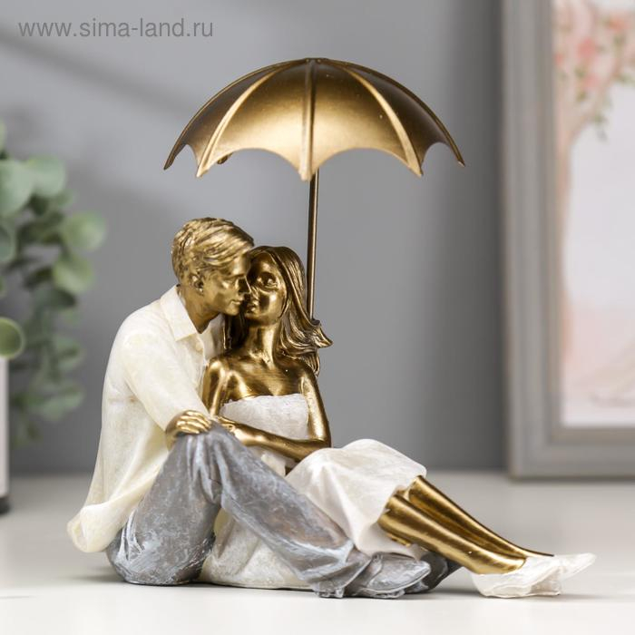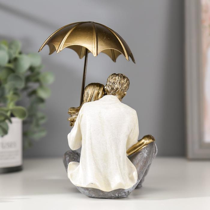 Сувенир полистоун романтика "Влюблённые целуются под зонтом" беж 18х10х18 см