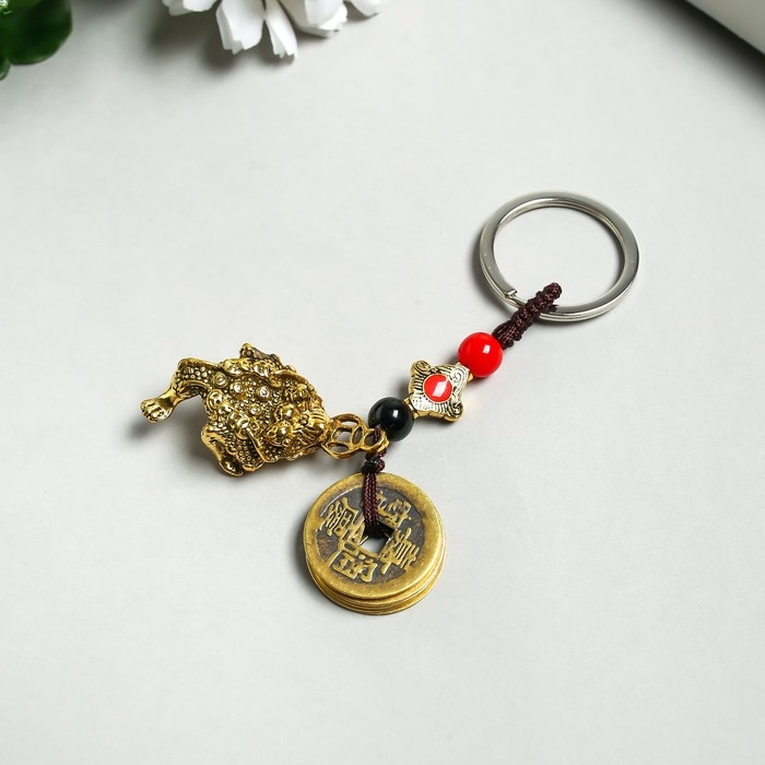 Брелок металл нэцке "Денежная жаба" 5 монет h=10 см