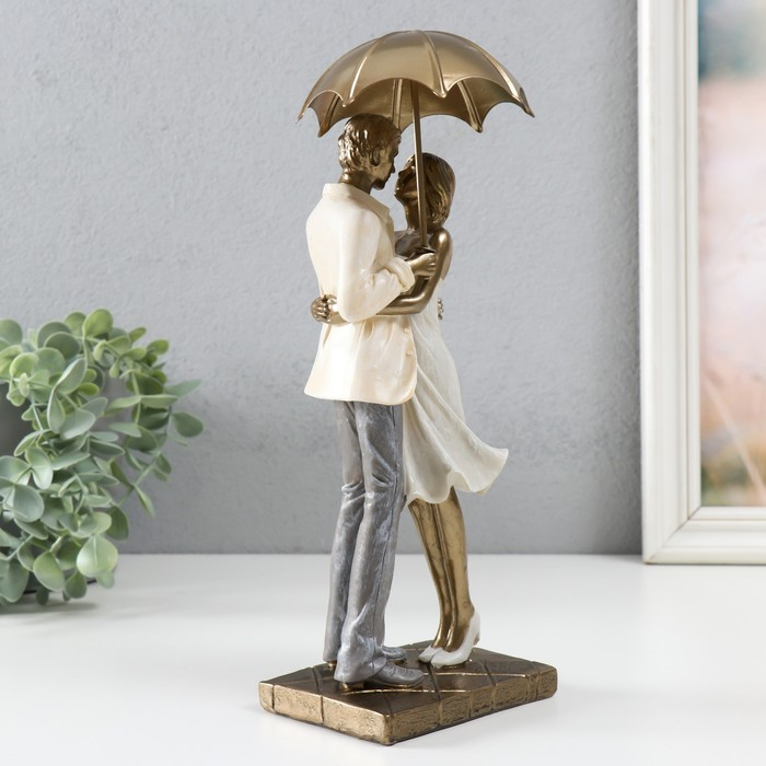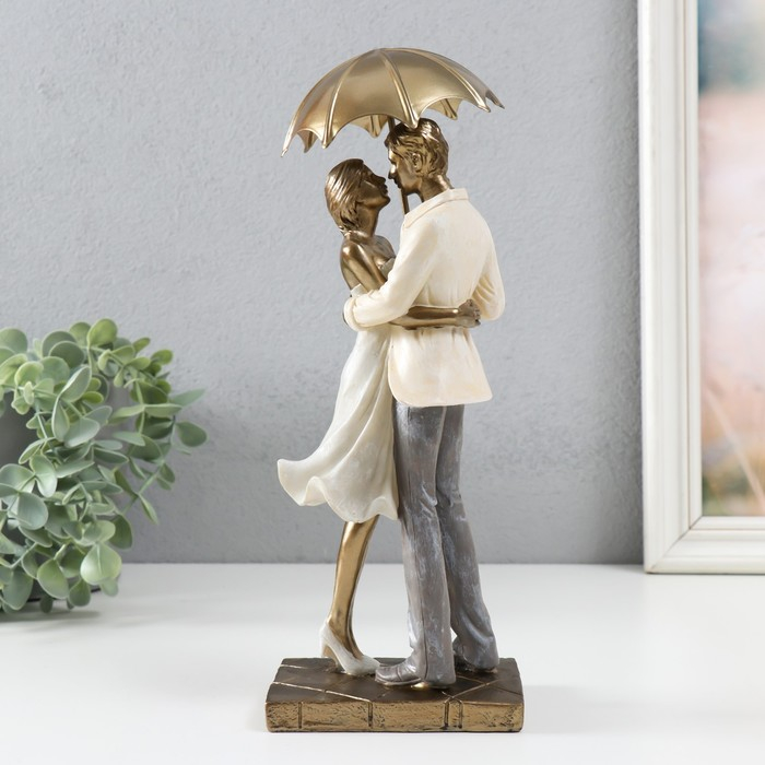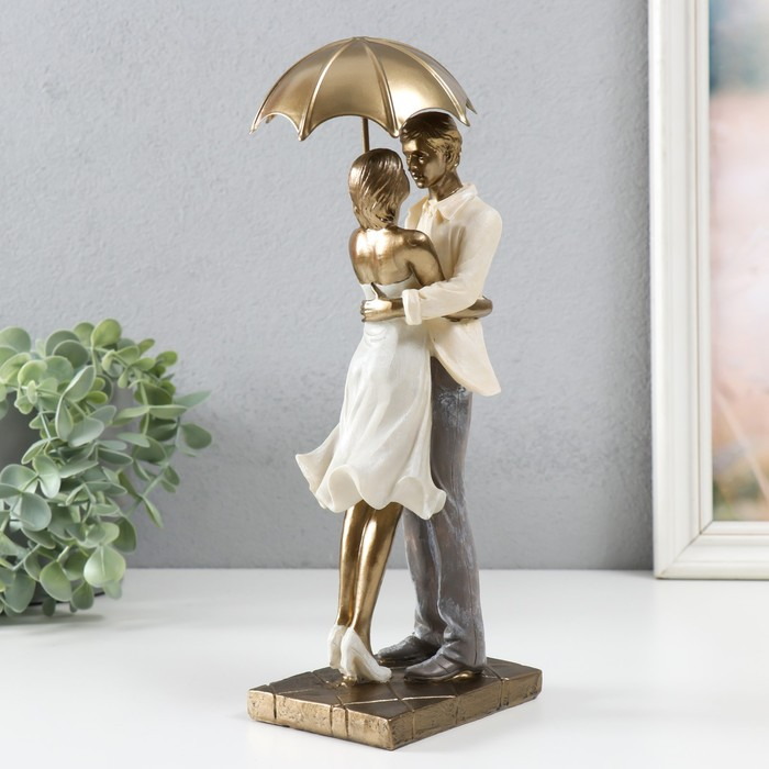 Сувенир полистоун романтика "Влюблённые под зонтом" беж 28х10,5х11,5 см