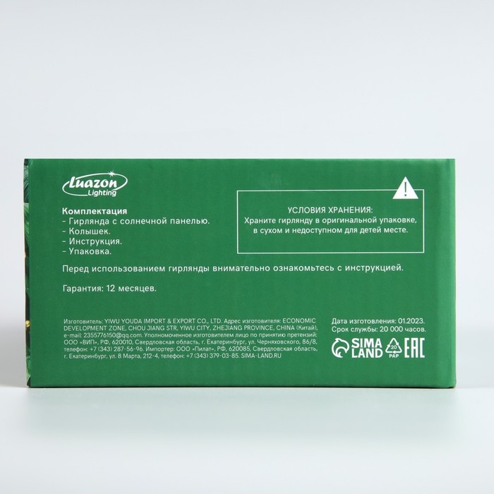 Гирлянда «Нить» 20 м, тёмная нить, 200 LED, свечение мульти, 2 режима, солнечная батарея