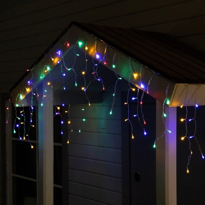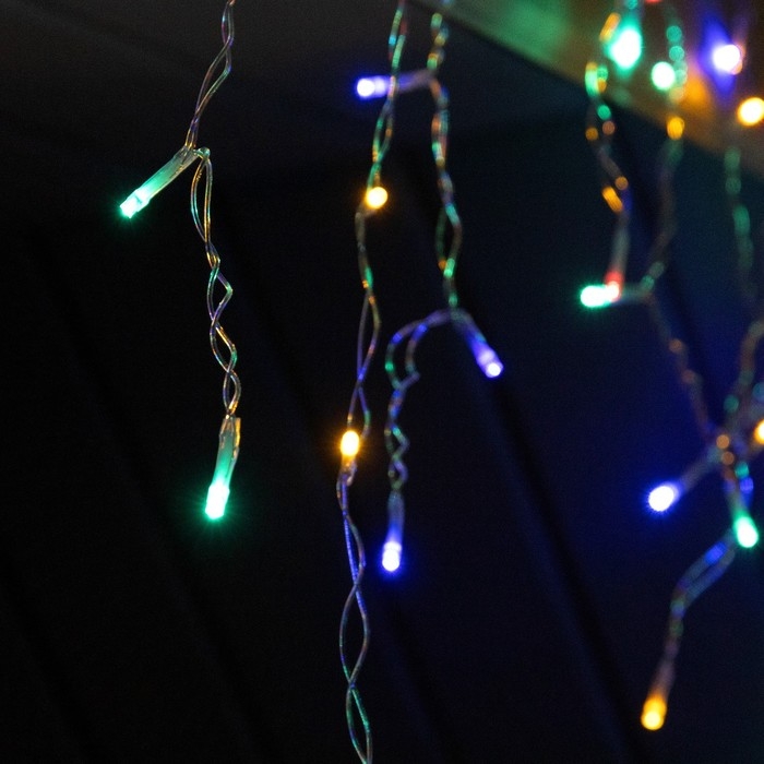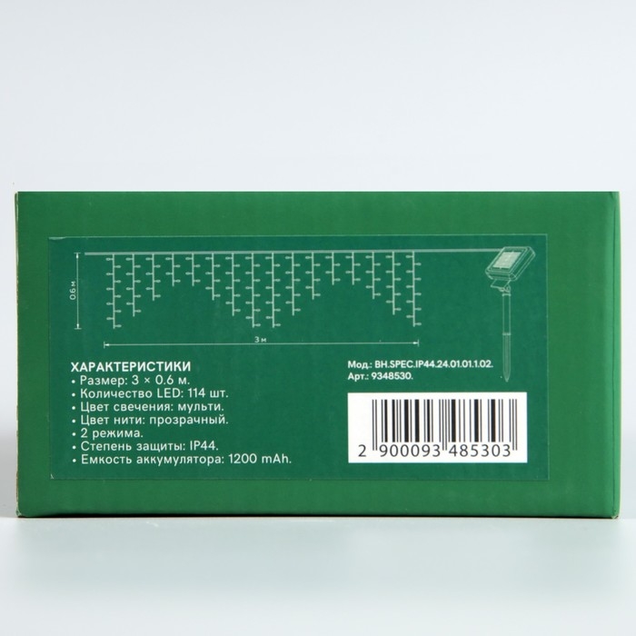 Гирлянда «Бахрома» 3 х 0.6 м, IP44, прозрачная нить, 114 LED, свечение мульти, 8 режимов, солнечная батарея