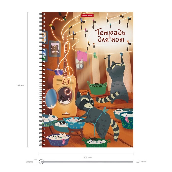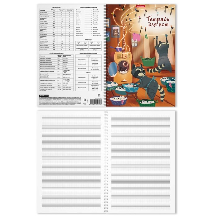 Тетрадь для нот А4 на спирали, 24 листа, ErichKrause "Ноты-еноты", вертикальная ориентация, обложка мелованный картон, блок офсет 100% белизна, с принтом