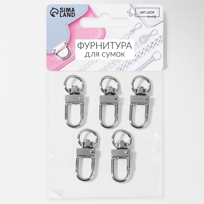 Металлический карабин предназначен для крепления ремней, ручек или декоративных элементов к сумке. Изготовлен из прочного металла, имеет гладкую поверхность и элегантный вид, что делает его не только функциональным, но и стильным элементом фурнитуры.