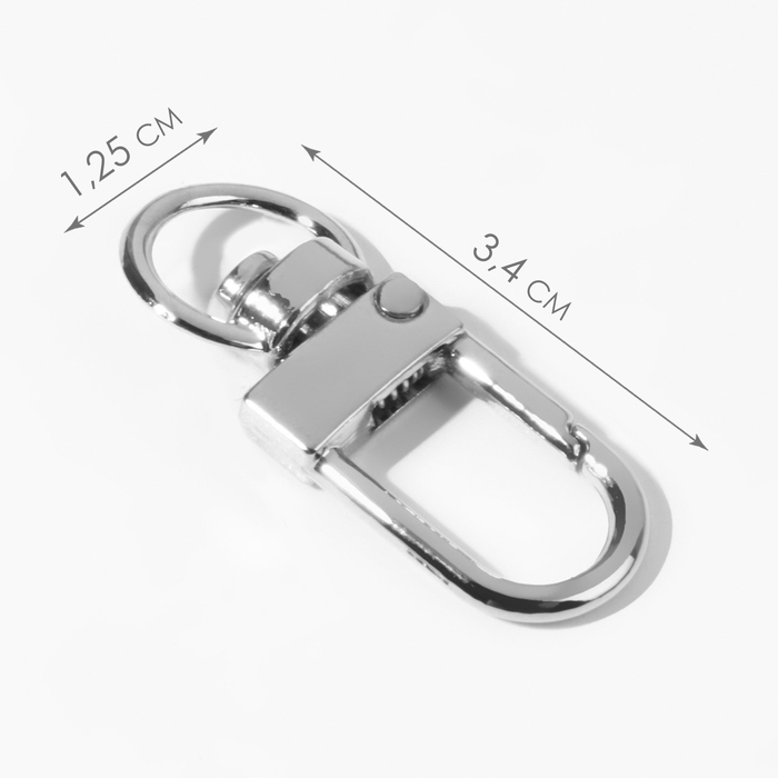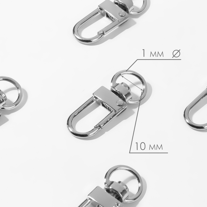 Карабин металлический, 34 × 12,5 мм / 10 × 1 мм, 5 шт, цвет серебряный