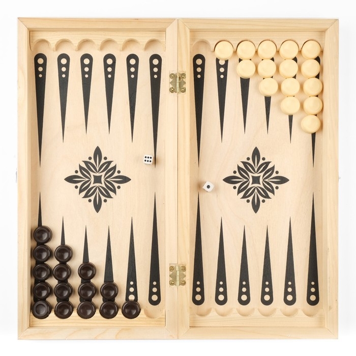 Нарды деревянные большие, настольная игра "Узор", 40 х 40 см, с полем для игры в шашки