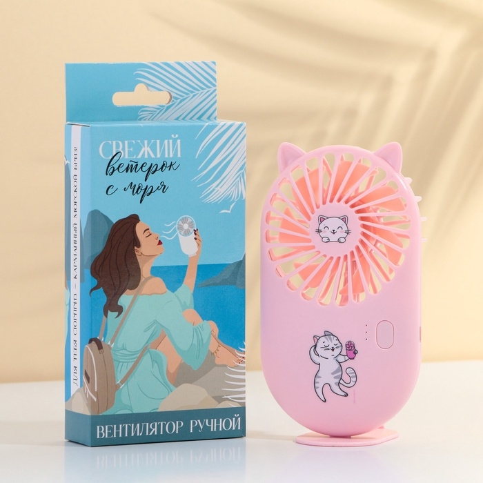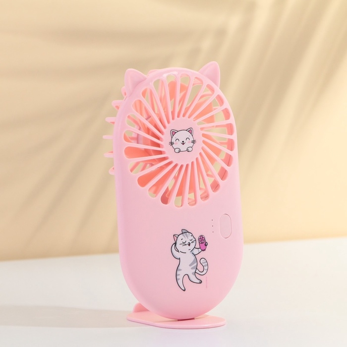 Миниатюрный вентилятор, который можно положить в карман, сумку или рюкзак, спасет вас в жаркую погоду! Также его можно поставить на стол с помощью специальной подставки, которая идет в комплекте.