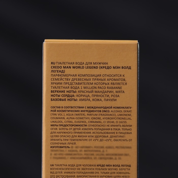 Туалетная вода мужская CREDO MAN World Legend, 100 мл (по мотивам 1 Million (P.Rabanne)