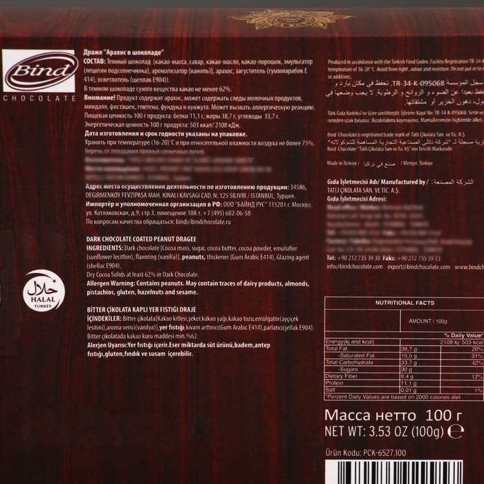 Шоколадное драже "Арахис в шоколаде" от Bind Chocolate это изумительный вкус и идеальный комплимент на любые случаи жизни. Изящный набор прекрасно дополнит основной презент, а также послужит самостоятельным вариантом, который по достоинству оценят поклонники шоколадных конфет. С ними ваше чаепитие станет особенно вкусным и приятным, поможет отвлечься от повседневной суеты и погрузиться в мир грез и фантазий!