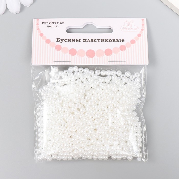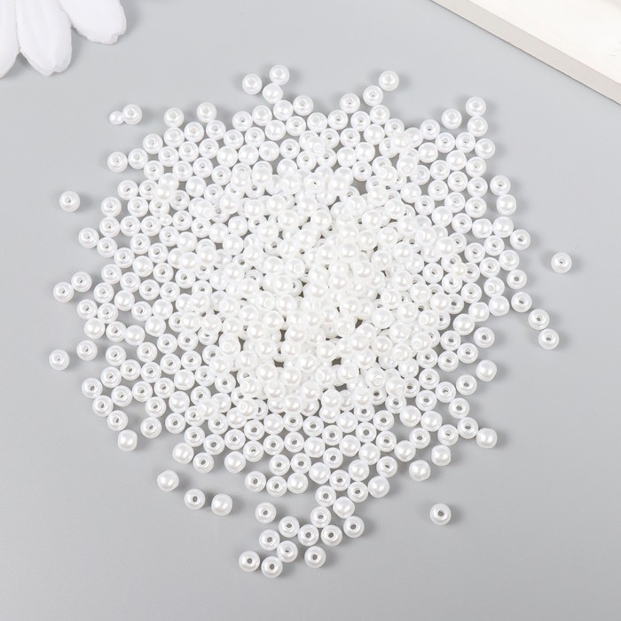 Набор бусин "Рукоделие" пластик, диаметр 4 мм, 25 гр, снежно-белый