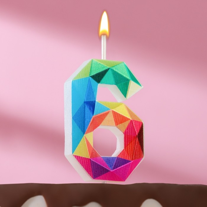 Свеча в торт на шпажке "Разноцветные грани", цифра 6, 5,3 см