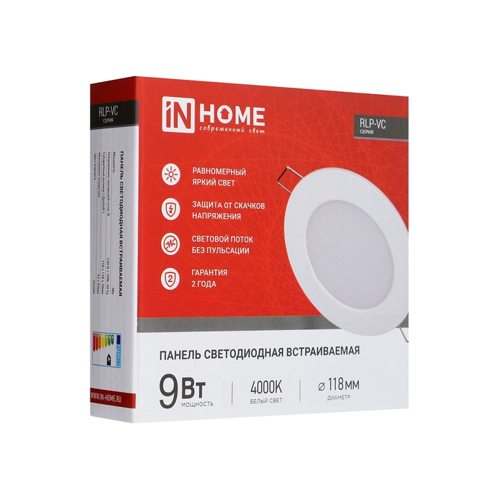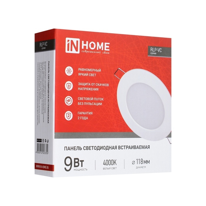 Панель светодиодная IN HOME RLP-VC, 9 Вт, 230 В, 4000 К, IP40, 630 Лм, 118 мм, круглая, бела