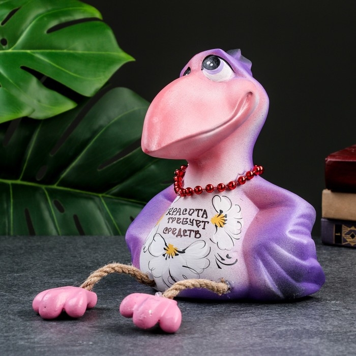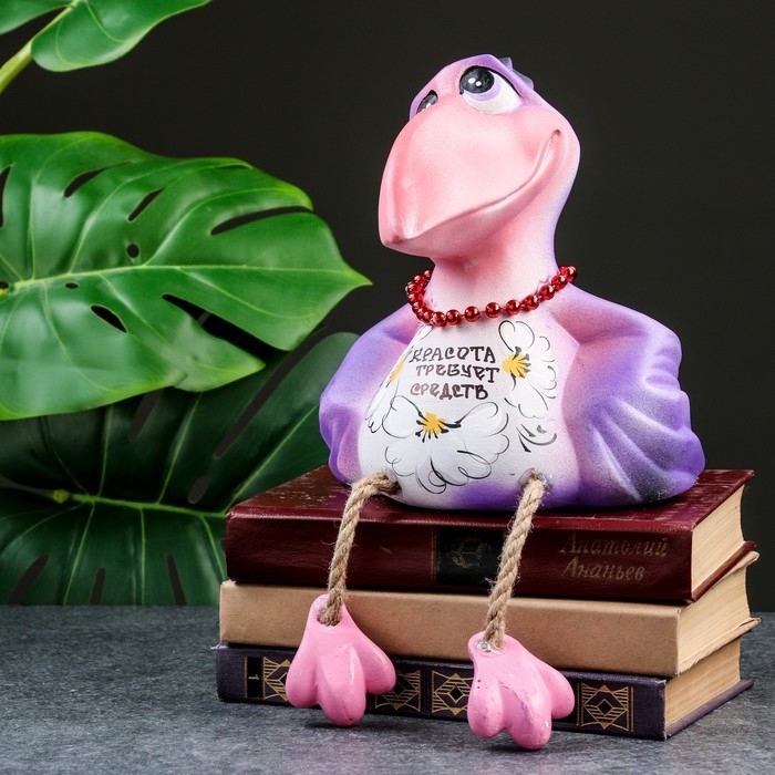 Копилка "Ворона - Красота требует средств" фиолетовая, 20см