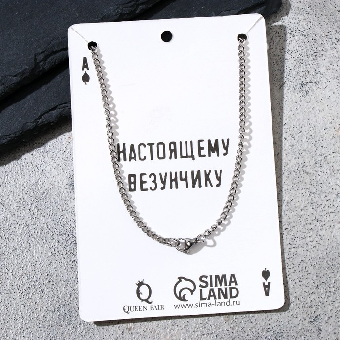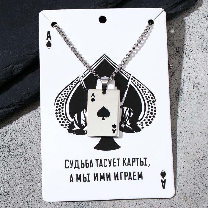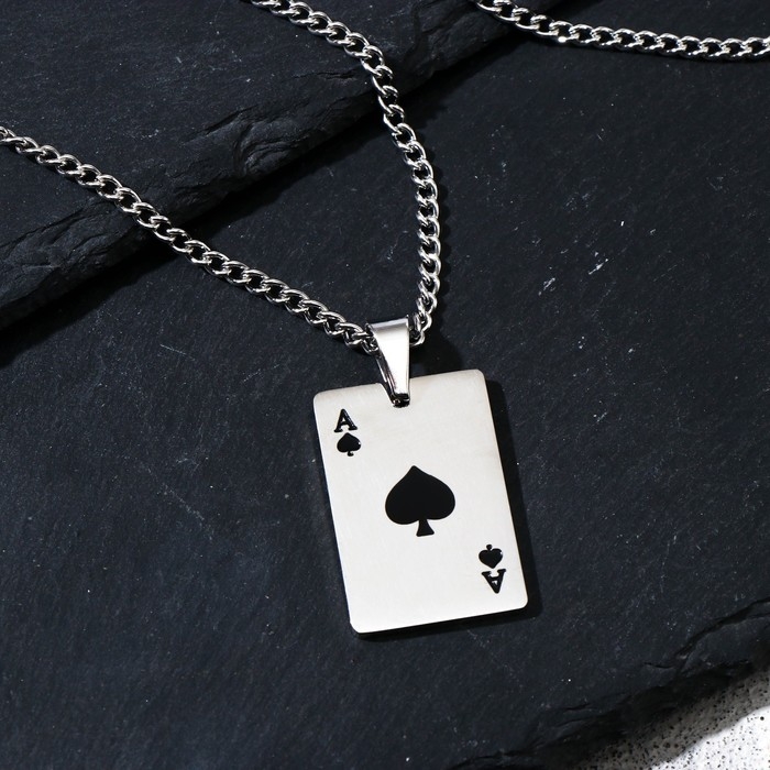 Кулон «Карта» туз пики, цвет чёрно-белый в серебре, 70 см