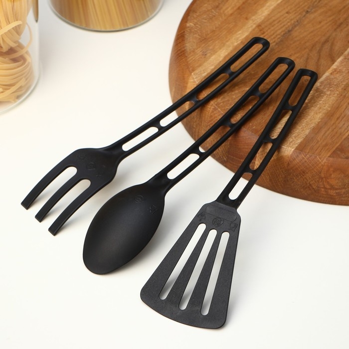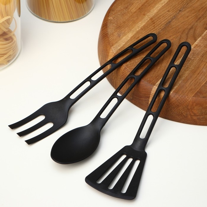 Набор кухонных принадлежностей Доляна «Лиам», 7 предметов, 33×12,5×12,5 см, цвет чёрный