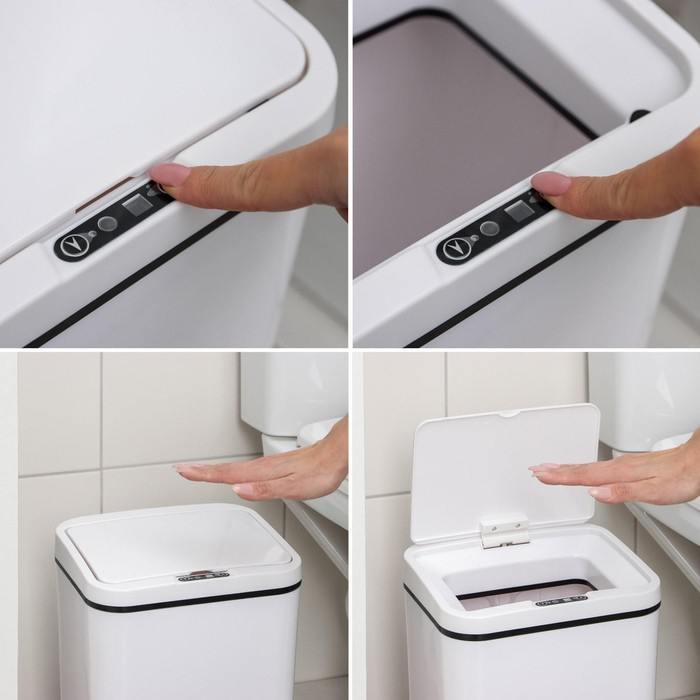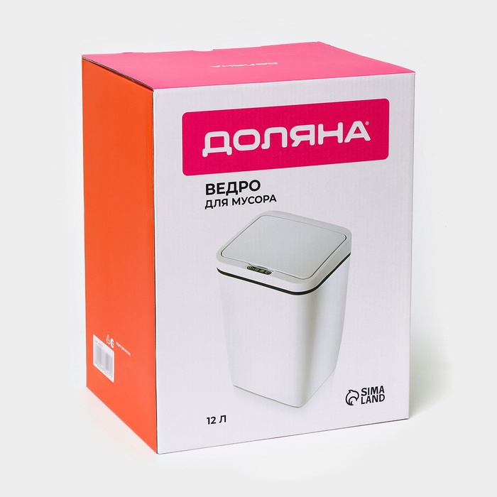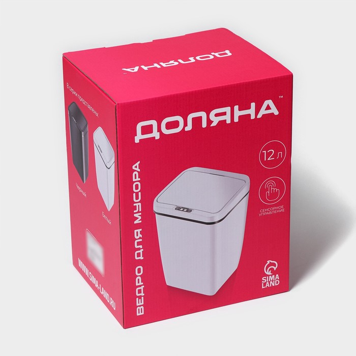 Ведро для мусора сенсорное Доляна, 12 л, цвет белый
