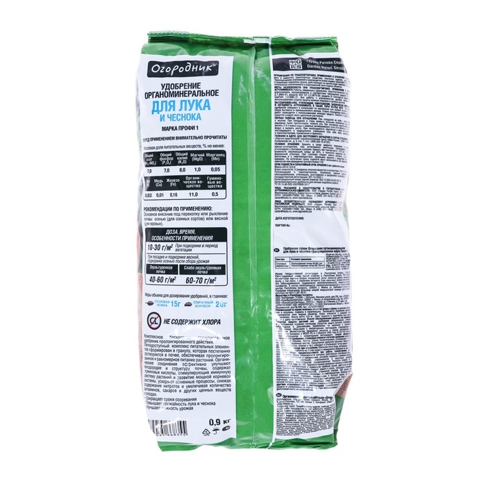 Удобрение органоминеральное Для Лука и чеснока гранулированное, Огородник, 0,9 кг