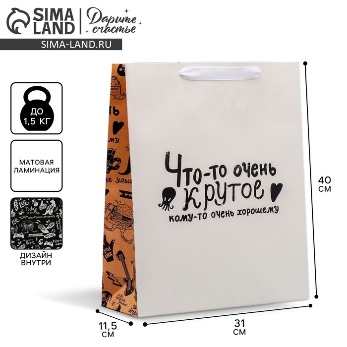 Пакет подарочный ламинированный двухсторонний, упаковка, «Что-то очень крутое», L 40 х 31 х 11,5 см