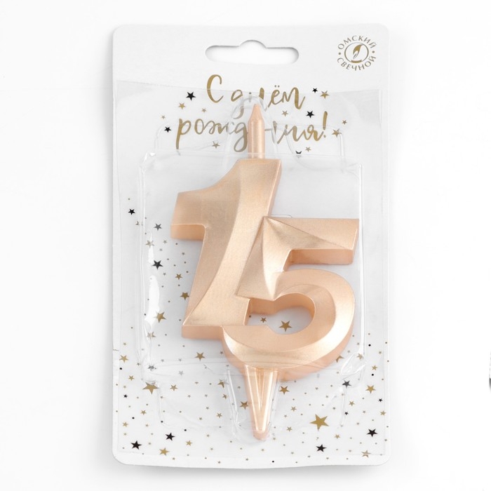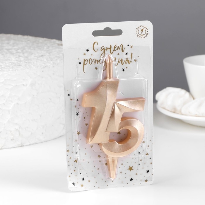 Свеча в торт "Юбилейная", цифра 15, 10 см, шампань
