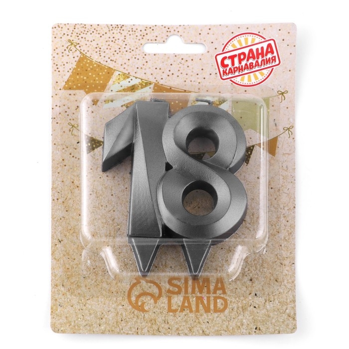 Свеча в торт юбилейная "Грань", ,цифра 18, , графит, 6,5 см