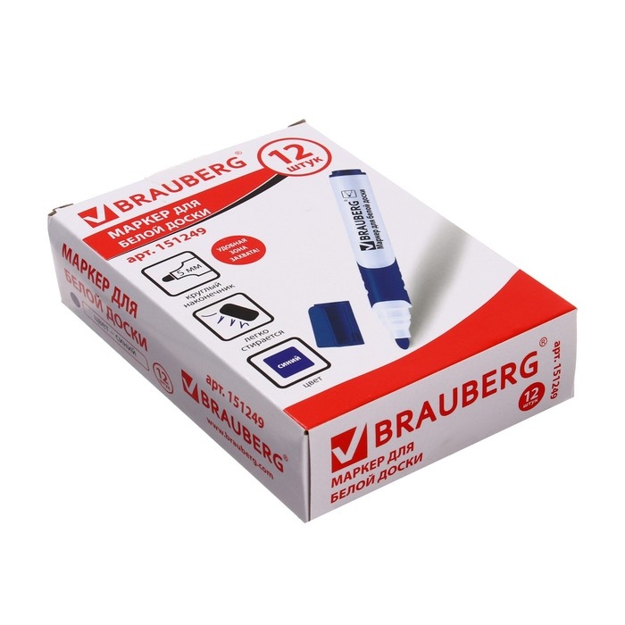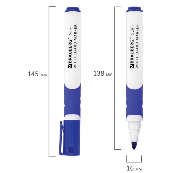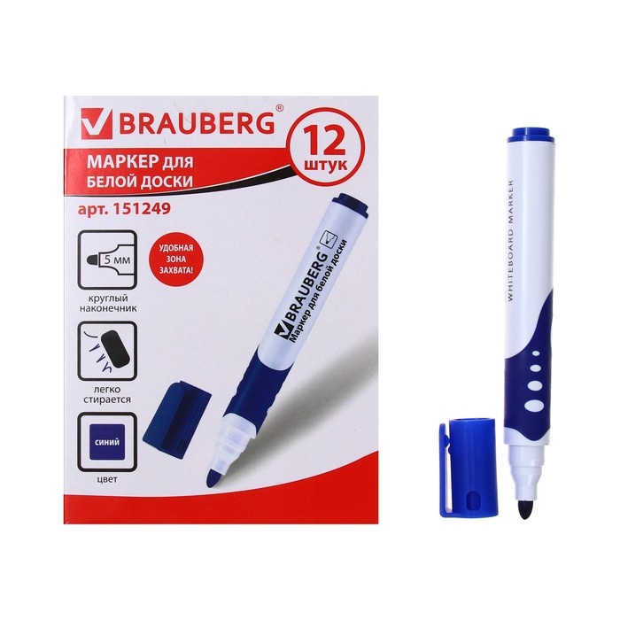 Маркер для доски 5,0 мм BRAUBERG "SOFT", синий, резиновая вставка 151249