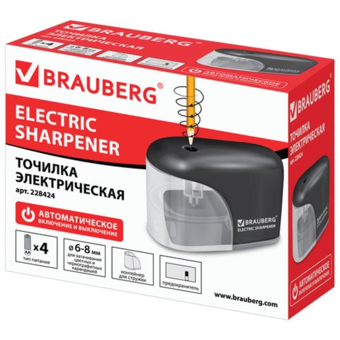 Точилка электрическая 1 отверстие BRAUBERG "Black Jack", пит 4 АА доп смен лезв 228424