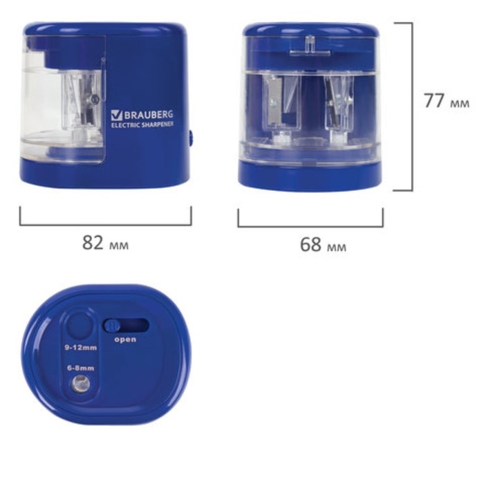 Точилка электрическая 2 отверстия BRAUBERG "STANDARD", питание от 4 батареек АА, 228423