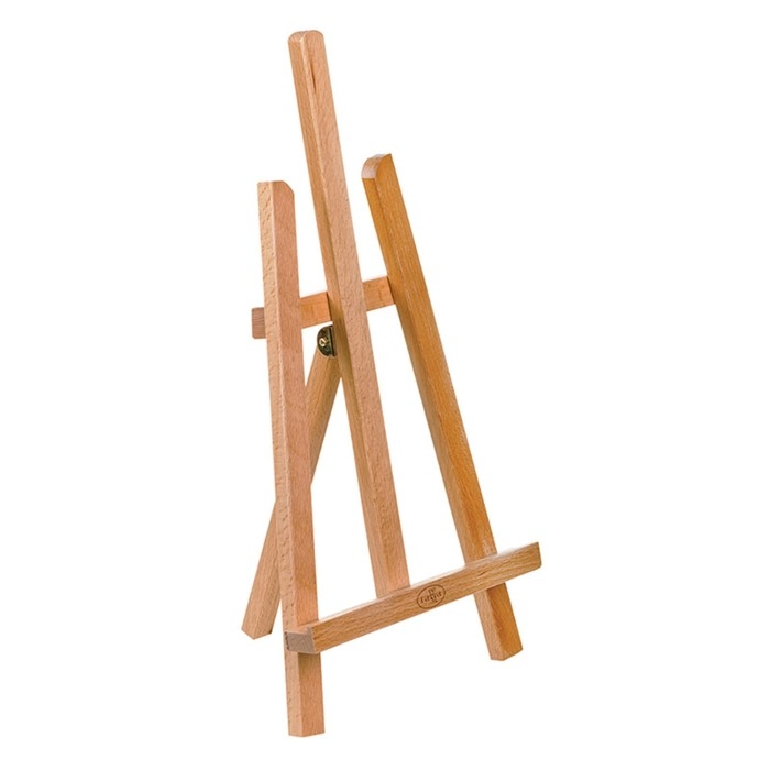 Настольный мольберт лира ГАММА «Студия» – простая классическая форма, которая подходит для работ небольших форматов. Размер мольберта – 19*18*40 см, максимальный размер холста – 30 см.Мольберт имеет плавную регулировку наклона. Он подходит для обучения живописи и демонстрации работ. Мольберт устанавливается на стол или другую рабочую поверхность. Изготовлен из лакированного бука.