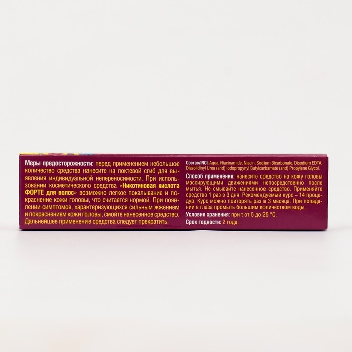 Никотиновая кислота и растительные стимуляторы роста для волос – это высокоэффективный препарат на основе никотиновой кислоты и растительных экстрактов, который стимулирует рост волос и оказывает укрепляющее действие на волосяные фолликулы. Формула препарата помогает ускорить рост волос и предотвращает их выпадение, а также способствует увлажнению и питанию кожи головы. Применение препарата приводит к улучшению качества волос, приданию им блеска и объема. Препарат не содержит парабенов и сульфатов, идеален для ежедневного использования.