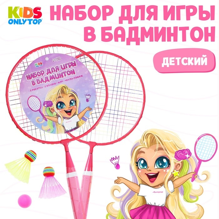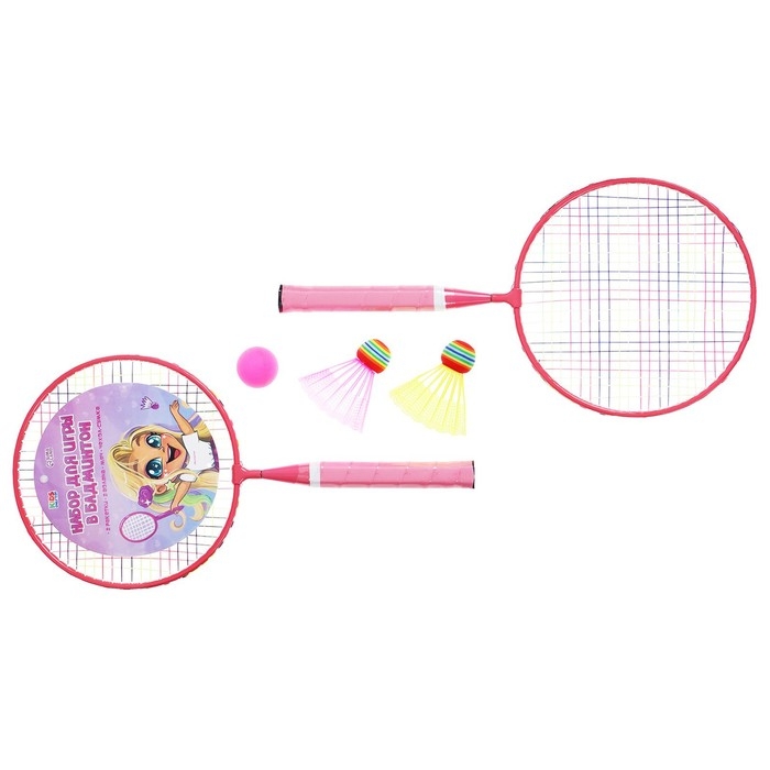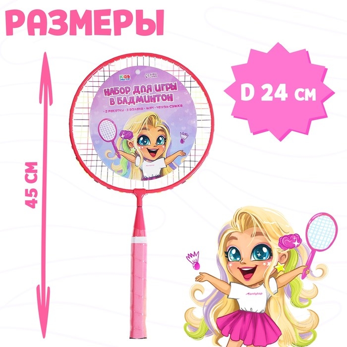 Набор для бадминтона ONLYTOP «Милашка»: 2 ракетки 44 см, 2 волана, мяч, чехол, цвет розовый