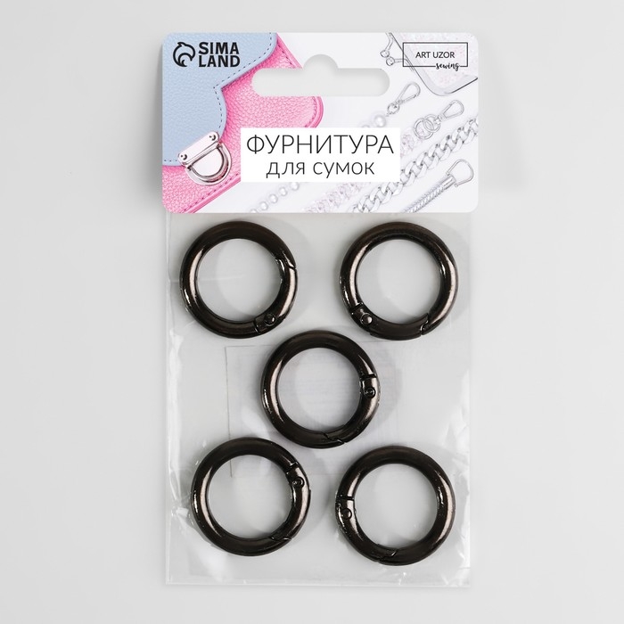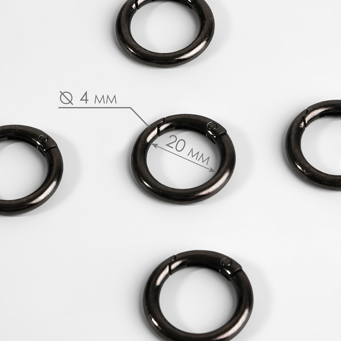 Кольцо-карабин, d = 20/28 мм, толщина - 4 мм, 5 шт, цвет чёрный никель