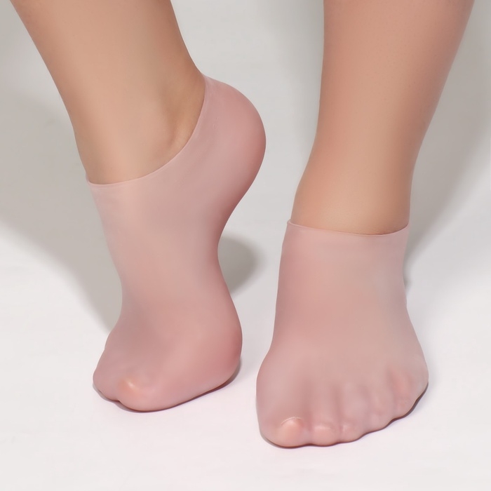 Напяточники для педикюра, увлажняющие, с силиконовыми вставками, ONE SIZE, цвет бежевый