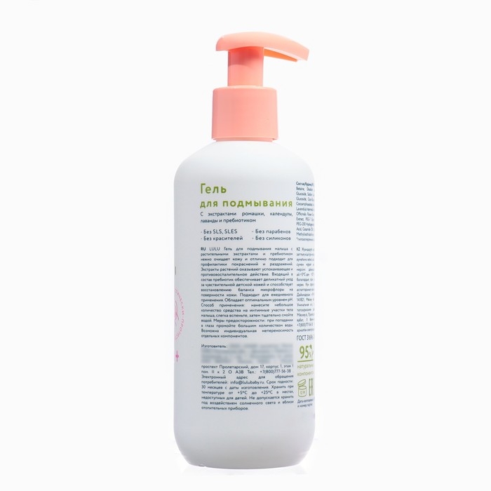 Гель для подмывания детский LULU с экстрактами ромашки, без парабенов, без силиконов, 300 мл