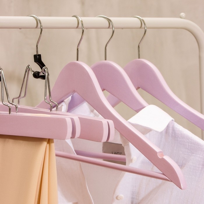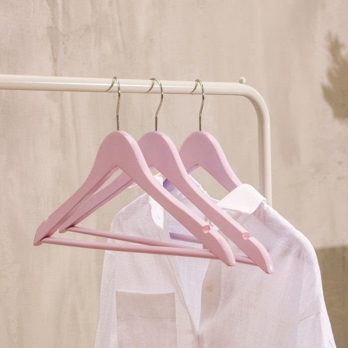 Плечики - вешалки LaDо́m Brillant, 44,5×23×1,2 см, 3 шт, деревянные, широкие плечики, цвет розовый